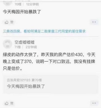 像是网上流传比较久的,梅园地区暴跌的问题,我也询问了一下梅园地区的中介。