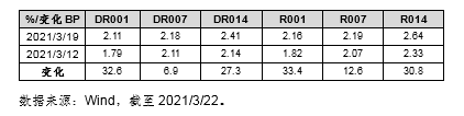 上周央行无投放和回笼,MLF等额续作释放中性信号,国债发行叠加缴税,资金价格较上周有上升。债券配置力量较强、股市继续调整、中美会晤双方态度强硬等因素带动债市情绪好转,债市利率下行,中长端品种下行幅度较大,短端利率波动不大。经济仍在缓慢修复阶段,货币政策维持中性,利率债供给压力将逐步释放,对债市有一定抑制,但风险资产的调整对债市有一定支撑。中短期来看,扰动因素较多不利趋势性操作,可把握边际变化带来的结构性行情。信用方面,关注降低宏观杠杆率背景下弱资质主体债券接续情况,建议规避低层级弱资质城投债,弱资质国企及外部融资极度依赖的主体。进入4月需要关注供给压力,资金面扰动和通胀超预期上行风险。