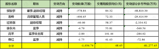 其中,副总经理邹骏宇、高管吉峰首当其冲,分别累计减持套现4.88亿、2.94亿。
