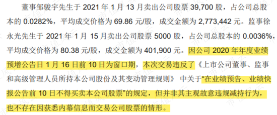 2021年1月25日,信捷电气发布了《关于董事、监事窗口期减持公司股票及致歉的公告》。