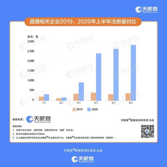 燃财经从天眼查获悉,截至7月28日,我国目前企业名称或经营范围含“直播”的企业有1.7万家,其中仅2020年上半年新成立的就有9164家,占比高达53.9%。MCN机构鱼龙混杂,加上多数明星不频繁直播,双方合作像是一场临时联姻,MCN机构责任心与专业度再次打了折扣。