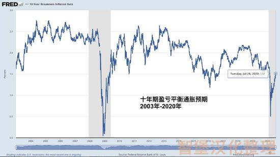 但目前金价怒涨,通胀预期飙升,通货膨胀突然出现在人们的视野。目前十年期盈亏平衡通胀率(十年期国债名义收益率—十年期通胀保值收益率)从三月的低点0.47%,一路飙升至目前的1.51%。而市场还预计美联储可能在9月引入前瞻指引政策并与物价水平挂钩。短期内,通货膨胀还有进一步上涨到2%以上的空间,这无疑加剧了市场的通胀预期。