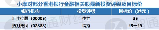小摩:部分香港银行金融相关股最新评级及目标价(表)