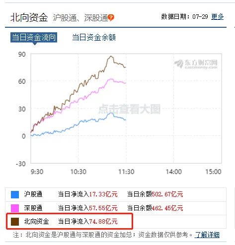 连续4个交易日净流出后,通过互联互通北上资金又杀回来了。今日上午2个小时狂买75亿元。