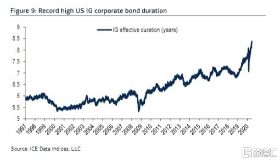 最近几个月企业寻求延长其债务的平均到期期限,亦凸显出央行平抑市场焦虑的必要性。美银分析师称,美国投资级信用债期限延长至创纪录的8.38年,意味着对逐日盯市风险更敏感的其他类型投资者比以往任何时候面临着更大的收益风险。