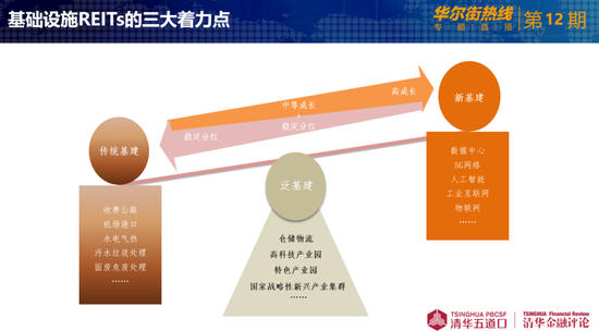 中国首先推出的是基础设施REITs。中国的基础设施REITs主要是哪些物业类型?基本上总结为三大类。一类是传统的基础设施,包括高速公路、“水电气热”等,主要基于专业术语“特许经营权”相关的,很多的都是跟公用事业相关,客户拿到30年的特许经营权,在特定的年份里资产收益归客户;一类是“泛基建”,包括前文提到的仓储物流、高科技产业园区等。仓储物流与电商的发展有关系,高科技产业园区中办公的多为出口型企业、科创板企业,这也体现出国家对高科技发展的支持;一类是数据中心。今年年初国务院提出“新基建”的概念,就是以数据中心为代表,包括电信塔。跟美国铁塔相对应,中国也有一只股票叫做“中国铁塔”,在香港上市,它也是以重资产为主的,比较适合做REITs。