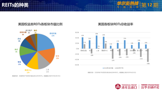 从板块的收益方面来看。虽然过去的两年美国的基础建设(受到5G推动)、物流和数据库(受科技公司推动)等股票都涨得好的不得了,收益回报呈现在30%-40%左右,但这并不代表历史数据。长期来讲,以20年、30年来看,REITs还是以其分红为主,增值比较小。根据6月30号的数据来看,零售今年跌了37%,酒店、办公楼、医疗等都受到很大的影响。总结起来,REITs种类繁多,过去两三年收益也很棒,但投资还是要谨慎,因为REITs受大环境影响较大,比如今年疫情对酒店、办公、零售REITs的冲击。