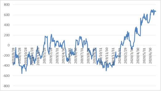 新冠疫情以来,国内重质产品裂解价差一直走势强劲,如FU与SC以及BU与SC裂解价差,疫情对油品消费影响更多的体现在了轻质油品上,加之原料成本滑落,使得重质油品裂解价差快速拉高,特别是沥青的裂解差价,自3月底以来持续走强,目前仍未出现减弱趋势。