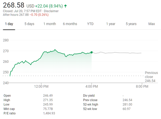 诚然,美股走势已和疫情下的实际经济状况出现一定程度的背离,推动美股上涨的原因有多方面,比如史无前例的财政刺激、市场对疫苗概念的炒作追捧、明星科技股的节节攀升等等。在一连串令人眼花缭乱的美好数字之下,如何判断华尔街对于疫情发展预期的真实态度?我想,包括Zoom在内的远程办公概念股的股价走势可以作为一个参考。作为视频会议软件提供商,Zoom成为疫情期间众多公司开会的首选服务商。对于一对一的在线会议,Zoom提供免费服务,而针对三人及以上的会议,需要付费才能避免会议在40分钟自动中断。自疫情爆发以来,Zoom股价一路走高,截止7月20日,该公司股价在年初迄今的涨幅高达295%。无论华尔街发布怎样的股市展望预测,我想,华尔街真正的想法,或许从Zoom的股价走势可见一斑。