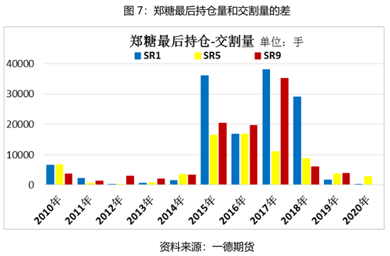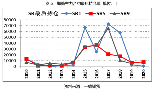 最后9月合约主要的交易主体基本都是甘蔗糖,因为此时甜菜糖厂尚未开榨,新糖还未集中上市,部分提前开榨的糖厂交割极少数量的糖也影响有限,更多是新旧榨季交替期间剩余的甘蔗糖库存,这也是今年生产的食糖可以交割的最后一个月份,9月过后新糖变陈糖,虽然可以交割,但要每个月贴水40元,最晚可以交割到11月份,通常11月交割量和3月、7月合约类似,交割交易量都比较少量。