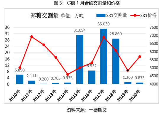 郑糖合约有1、3、5、7、9、11六个合约,其中的1月、5月和9月合约是较为活跃的合约,也是所谓的主力合约,其中1月合约交割前后是国内甜菜糖大量上市的阶段,也是对盘面交割影响较为关键的仓单来源,而甘蔗糖处于开榨初期,套保和销售的意愿并不高,加上是消费淡季,更多对后面两个合约期待较为关键,尤其近两年来糖价偏低,想对于甘蔗糖甜菜的成本优势更高,交割可行性和利润更高,所以郑糖1月合约交割前后的主要仓单来源就是甜菜糖为主,甘蔗糖为辅的结构,1月合约交割后,3月合约的交割量和市场关注度一般较低,主力5月合约逐渐成为下个交割意向,而此时甜菜糖基本在一季度就销售大半,剩余糖源有限,5月合约仓单和交割主要来源就是甘蔗糖,面对的也是春节前后和二季度前半段的市场需求。