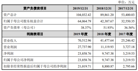2017年至2019年,宏力达营业收入分别为2.52亿元、4.15亿元、7.05亿元,归属于母公司净利润分别为3219.53万元、9747.38万元、23858.76万元。