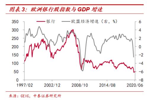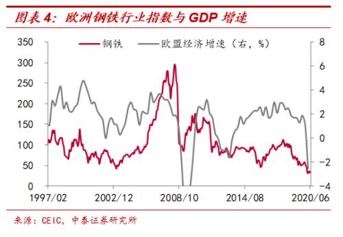 我们同样考察了欧洲,结果也是如此。欧洲银行、钢铁以及能源等周期行业的股票走势与经济周期也基本一致。