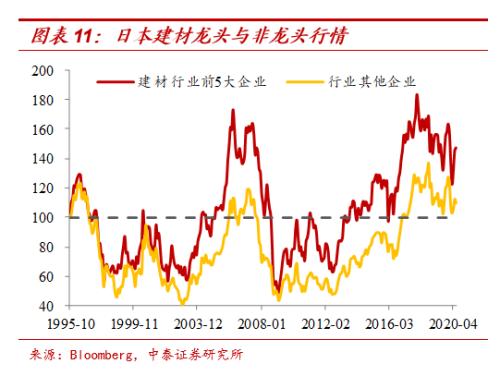 日本经济从90年代起进入长期低迷期,周期股整体行情再也没回到90年代初的高峰(金麒麟分析师),但龙头企业的表现仍要比非龙头好一些。