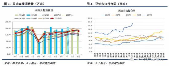 除了替代消费及饲用消费之外,我们将并未实际消费而是进入隐性库存中的植物油计入非实质性消费一栏,认为该项主要包括家庭囤货、渠道囤货、储备扩增等。不同于前两项消费,这部分量并未被实际消费掉,而只是进入了隐性的终端、渠道库存中,导致根据显性库存推导出的表观消费量偏高。