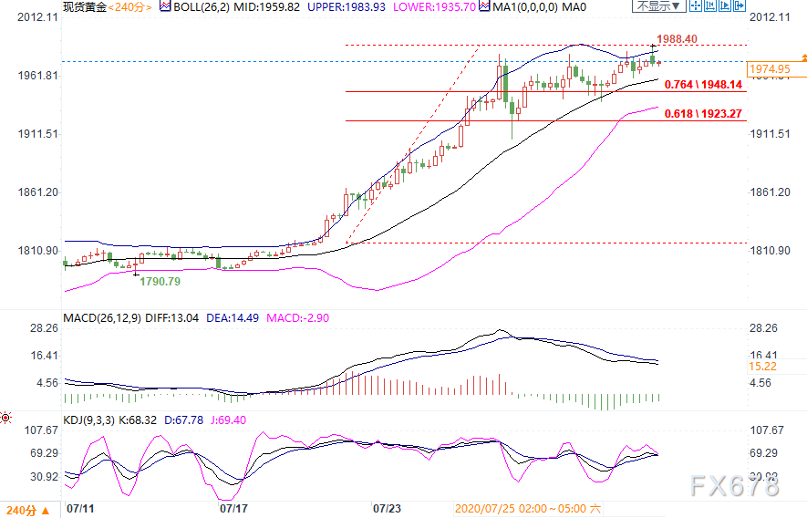 目前仍以看涨为主,目标位2000美元关口;但需要提防超买风险,激进者可等待回调后逢低谨慎做多。