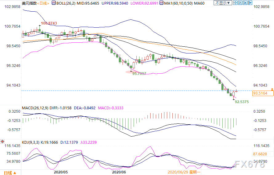 下行支撑方面,先留意93.00关口,强支撑关注上周五低点92.54。若跌破料测试2018年5月14日低位92.24;甚至可能下跌至2016年5月末低点91.90。
