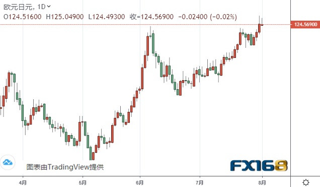 欧元/日元似乎也触及近期高点125.21,该汇价短期内可能回落向123,然后料再度反弹至更高水平。