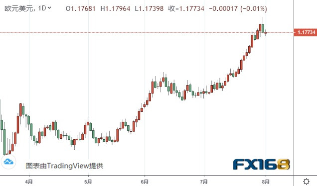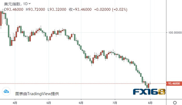 由于疫情在美国持续扩散,预期中的经济复苏难以顺利展开,7月份美元指数下跌近5%。