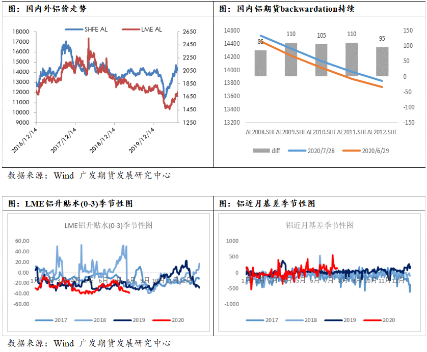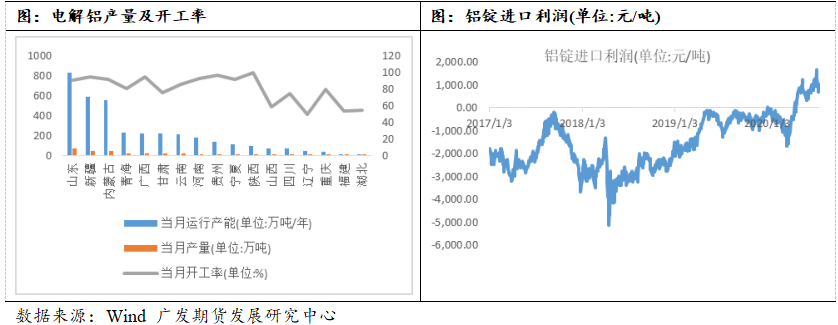从需求的角度来讲,国内需求未有明显滑落迹象,但铝棒出库量回落,库存小幅上涨;日本升水小幅增加,海外需求有回暖迹象。近期国外疫情形势依旧不容乐观,美国一周内每日新增病例多达7万左右,虽然出口利润有所上升,但国外需求整体恢复依然缓慢。环比来看,进口窗口打开不会长期持续,预计铝价将转为外强内弱。
