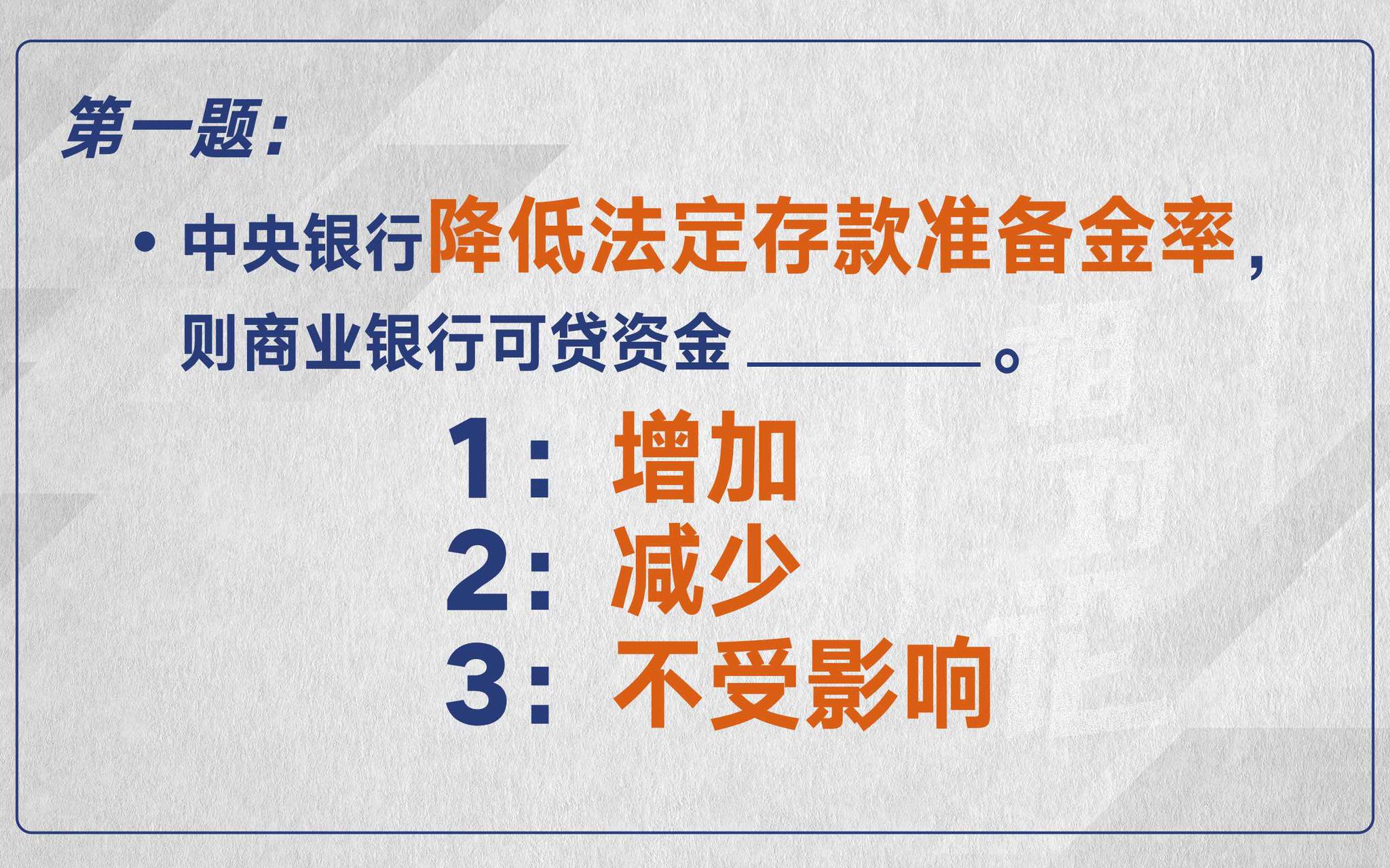 孙艳:答案是增加。我们说央行是“银行的银行”,简单理解就是我们往银行里存钱,银行要按照法定存款准备金率交一部分钱到央行。当准备金率下降,意味着交到央行的钱少了,银行可用的资金自然就增加了。