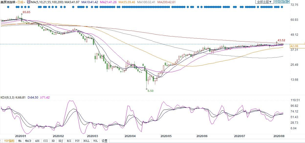 北京时间8月11日10:10,美原油期货价格报42.20美元/桶。