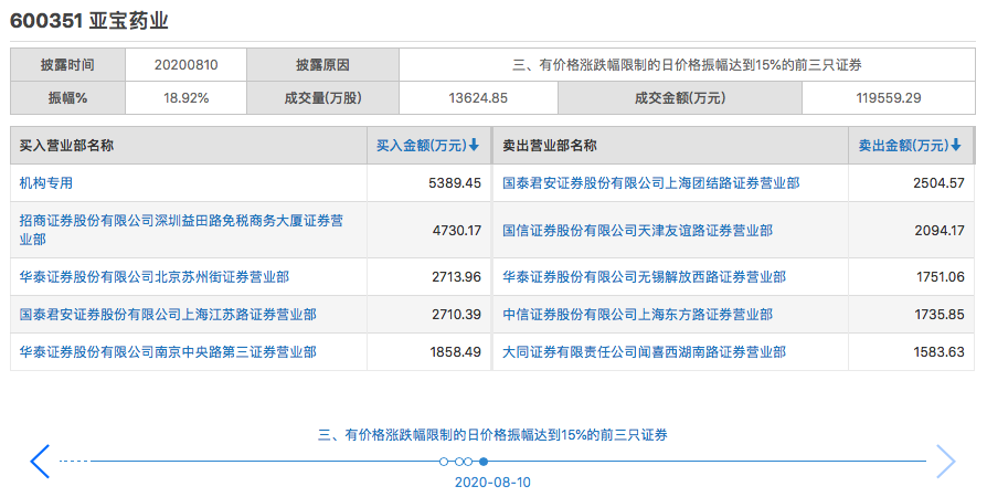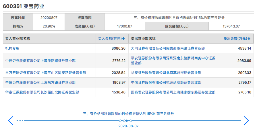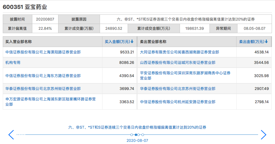 图"亚宝药业龙虎榜;来源:上交所