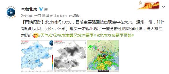 截至发稿,北京市气象局已发布昌平、怀柔、延庆等多个地区降雨实况视频,并雨情跟踪消息称,北京时间13:50,目前主要强回波出现集中在大兴、通州一带,并伴有短时大风。另外,怀柔、延庆一带也出现一些分散性的较强回波。不过,北京气象局官微称,“现在的雨还不是主力军”。