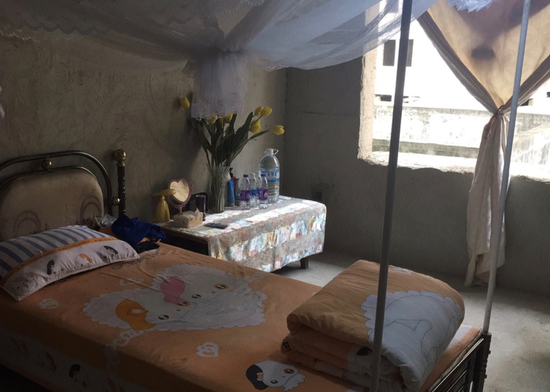 风一吹入房间,空气里便弥漫起大量尘土,大家抱怨不已,有人往墙上贴满墙纸,希望可以挡灰。窗子连窗框都没有,家家户户便都挂上窗帘,有红色的、蓝色的,有格子的、花纹的。能遮风挡雨,就成了一个家。“虽然条件特别艰苦,但我住在这里心里踏实,这里是我花了100多万买的家。”刘萍说。