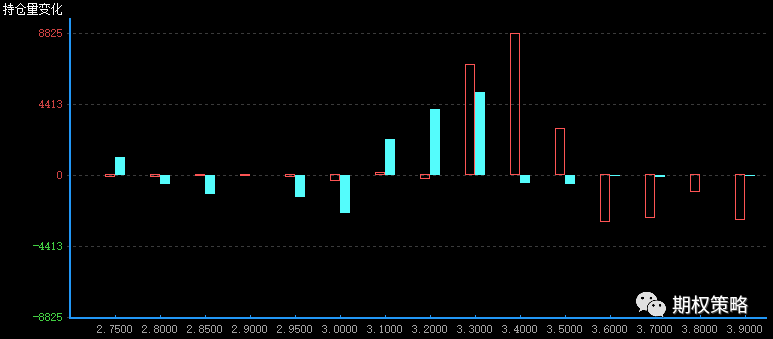 从8月持仓变化来看,认购在3400处增仓最大,认沽在3300处增仓最大,50ETF支撑有上移迹象。
