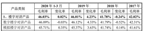 报告期各期,公司楼宇对讲产品毛利率分别为47.58%、42.02%、41.78%、46.01%和46.03%。