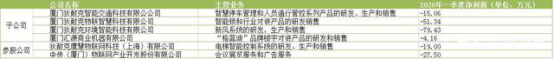 而两家参股公司近期的经营业绩同样令人担忧。鹰慧物联网科技(上海)2020年一季度的净利润为-19.00万元,中传(厦门)物联网2020年一季度的净利润为-27.50万元。