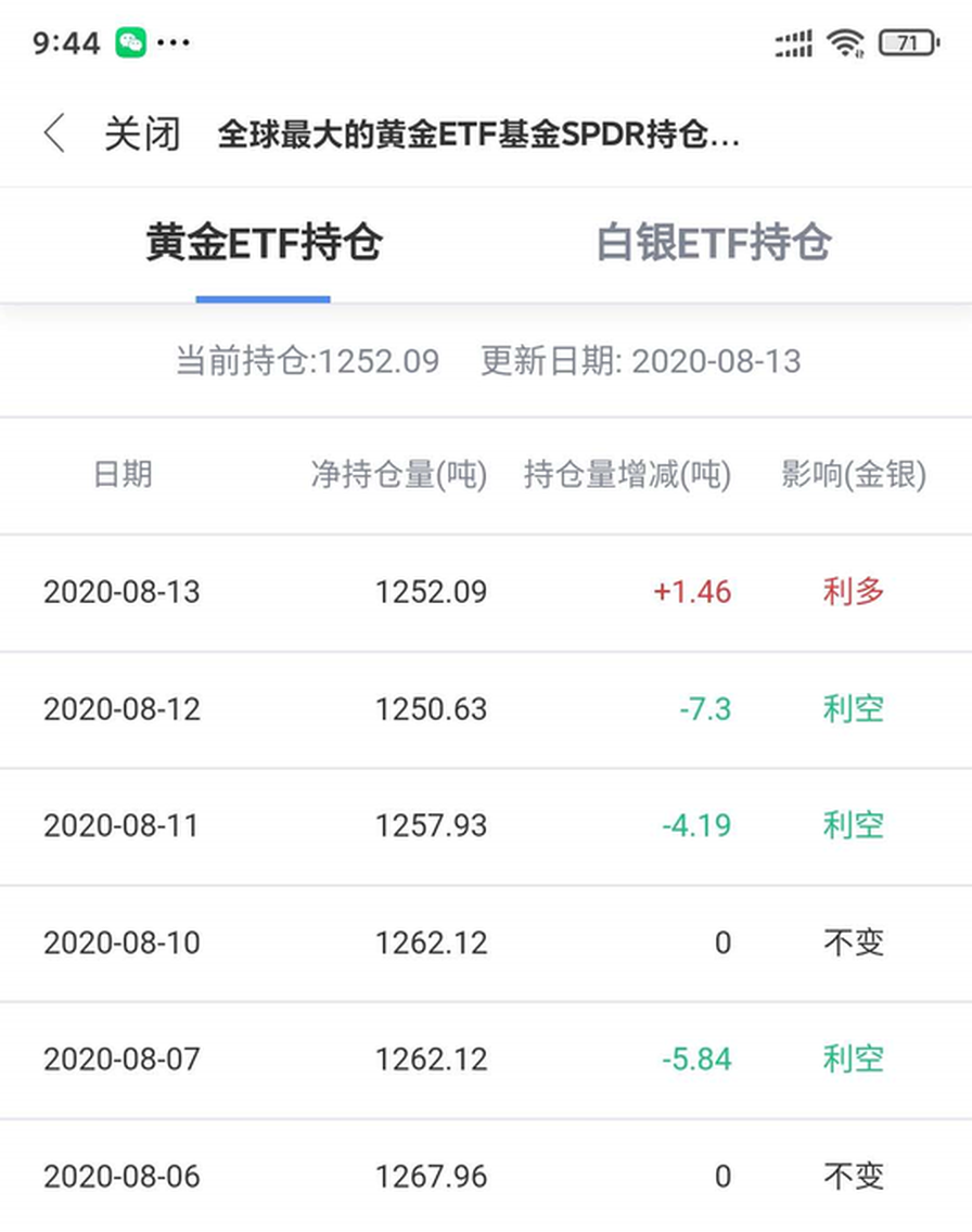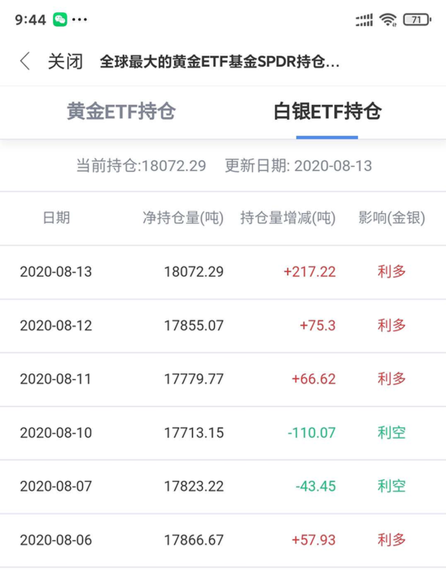热点栏目全球最大黄金ETF--SPDR Gold Trust持仓较上日增加1.46吨或0.12%,当前持仓量为1252.09吨。全球最大白银ETF--iShares Silver Trust持仓较上日增加217.22吨,当前持仓量为18072.29吨。