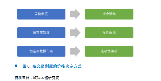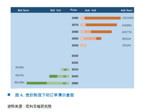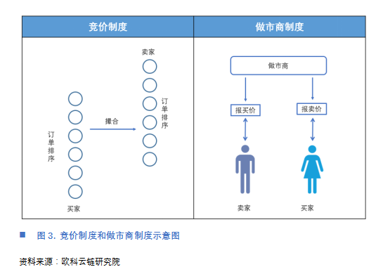 无论是竞价制度还是做市商制度,两者依赖订单薄(Order Book),即需要将订单挂至订单薄上,以价格作为信号进行交易。在竞价制度中的要求撮合是按最有利于交易双方的价格买卖资产;同样地,做市商制度中要求做市商必须事先报出买卖价格,而投资人在看到报价后才能下达交易委托。