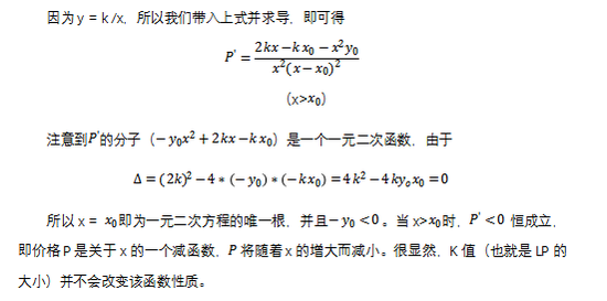 当两种资产的数量都微小变动时,我们可以发现实际交易价格为原函数的导数,即: