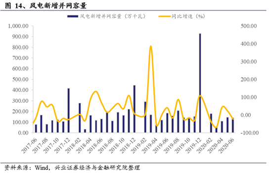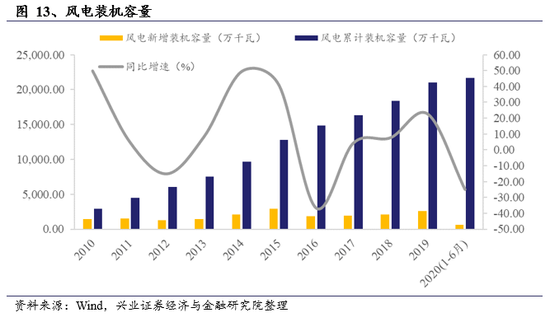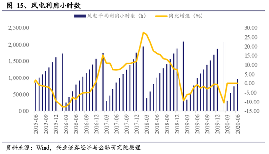 2020年1-6月风电平均利用小时数1123小时,同比下降1.00%,主要是受公共卫生事件的影响。2019年1-9月,全国弃风电量122亿千瓦时,同比减少84亿千瓦时,全国平均弃风率4.2%,弃风率同比下降3.5个百分点。全国弃风电量和弃风率持续“双降”。