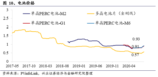 电池:价格上涨。上游涨价,电池企业迅速调价,通威报价从0.89元提升至0.97元,涨幅高达9%。