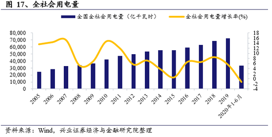 2020年1-6月全社会用电量为3.35万亿千瓦时,同比增速为-1.27%。