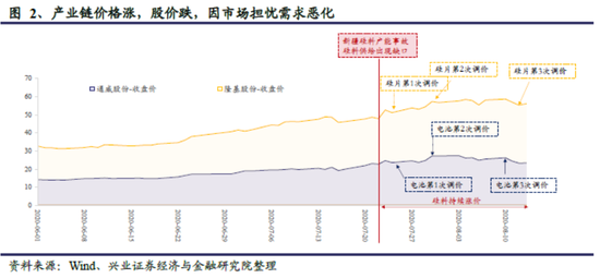 一、8月以来的股价调整,主要原因是产业链价格过快上涨,引发市场对于需求的担忧