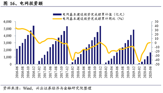 2020年6月电网投资额为523亿元,同比上升7.39%,环比上升12.72%,电网投资增速下滑。