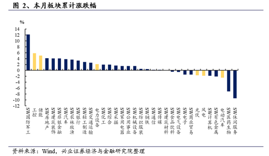 从月度行情来看,本月初至今上证综指上涨1.51%,创业板下跌4.76%,本月光伏、风电、电动汽车、电力设备、工控和储能板块的涨幅分别为-1.64%、-1.78%、-2.46%、2.11%、5.82%、4.99%。