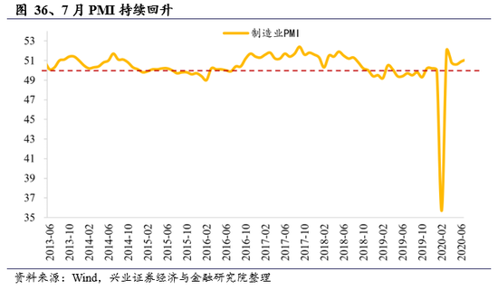 7月制造业PMI为51.1%,同比+2.82%,环比+0.39%,制造业下游企业复工复产速度加快。