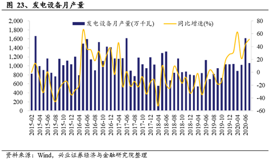 发电设备7月产量为1065.00万千瓦,同比增加51.39%,月产量逐渐回暖。