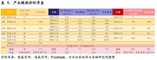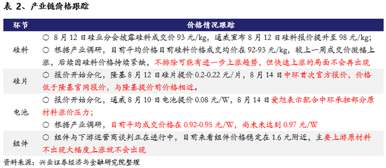 据兴业电新统计,产业链各环节修复至年初价格上限,硅料、电池突破年初价格。7月以来,出硅料外,其他环节属于温和上涨(主要是7月20日,协鑫新疆产能才发生事故),但8月至今,行业龙头引领价格持续攀升,斜率向上加大,引发了市场对于需求恶化的担忧,股价进入调整期。