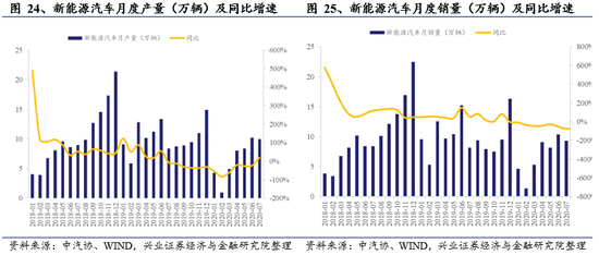 新能源车7月产销为10.0万辆和9.3万辆,同比上涨18.8%和13.8%。产量环比下降2.0%,销量环比下降10.0%。