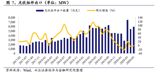 根据Solarzoom数据显示,2020年5月我国组件单月出口规模为5.97GW,同比-0.9%,环比+9.33%,1-5月累计出口规模26.19GW,同比-2.00%。