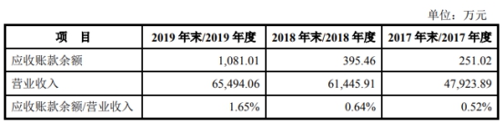 亿田股份称,2016年至2018年公司应收账款占营业收入比例总体处于较低水平。2019年末应收账款余额占营业收入比例相对较大,主要系2019年末应收北京京东世纪贸易有限公司852.72万元,主要系公司期末应收与京东电商平台已结算但尚未收到的货款。