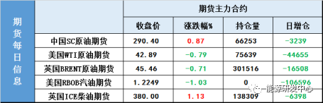 【1】WTI 主力原油期货收跌0.34美元,跌幅0.79%,报42.89美元/桶;布伦特主力原油期货收跌0.32美元,涨幅1.14%,报45.46美元/桶;INE原油期货主力合约夜盘收涨0.87%,报290.4元/桶。