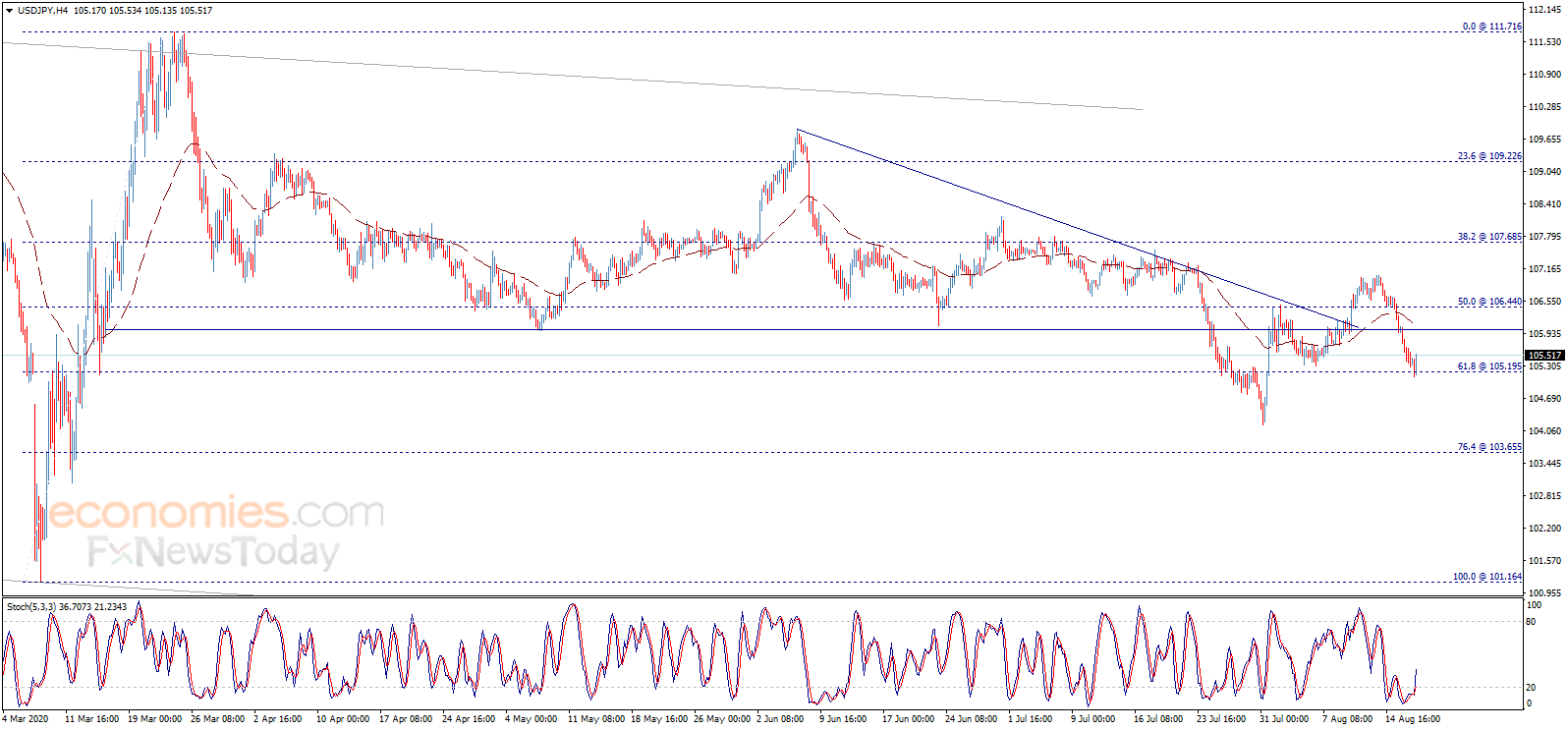 103.65。需要考虑到的是,假如美元/日元未能跌破105.20,这将推动该汇价反弹并测试106.44,然后重新尝试下滑。