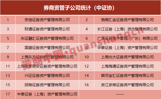 年内也已有安信资管、德邦资管、天风资管三家券商资管子公司成功获批,且资管子公司获得了来自母公司的净资本担保承诺,也成为业内常见的操作。但总的来看,包括新开业不久的安信资管在内,中证协显示目前业内券商资管子公司数量仅为17家,算上仍在筹备中的德邦资管和天风资管,也不过19家而已,更多证券公司仍未能设立资管子公司。
